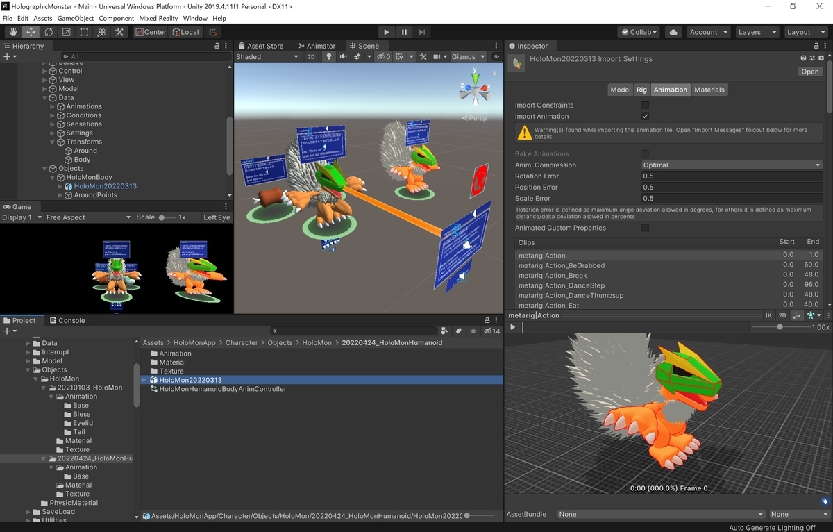 HoloMon オブジェクトを複製して3Dモデルの部分を Humanoid リグ版ホロモンに差し替えました。