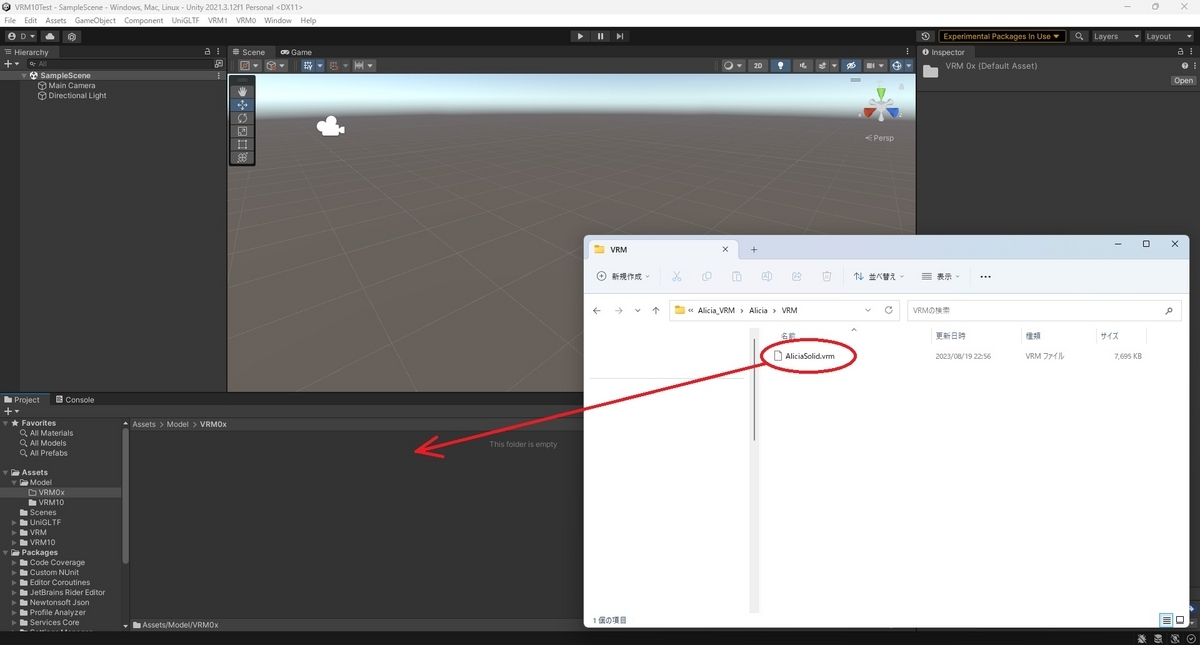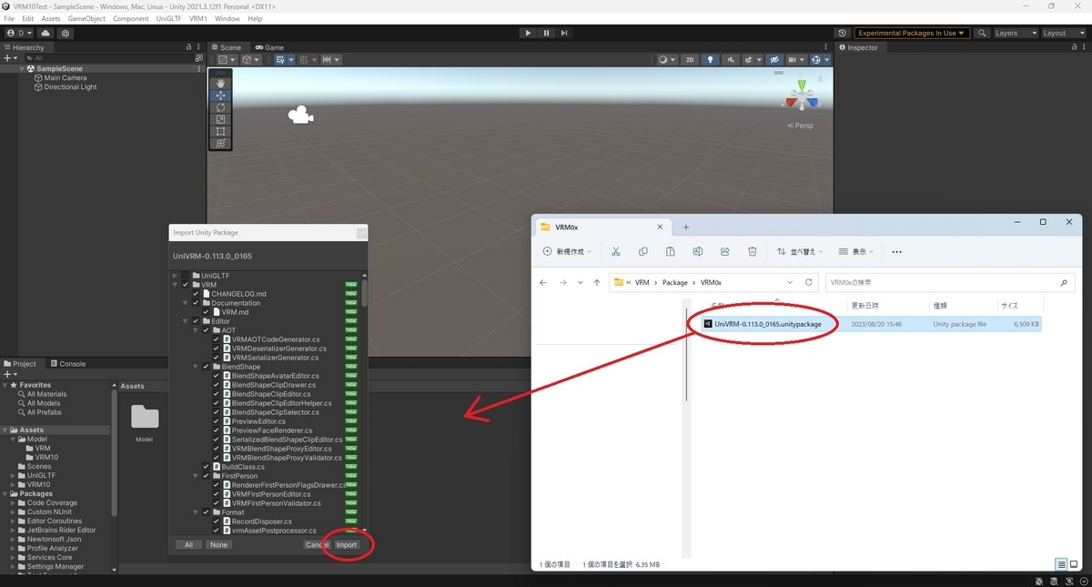 ダウンロードした UnityPackage を Unity プロジェクトにドラッグしてインポートします。