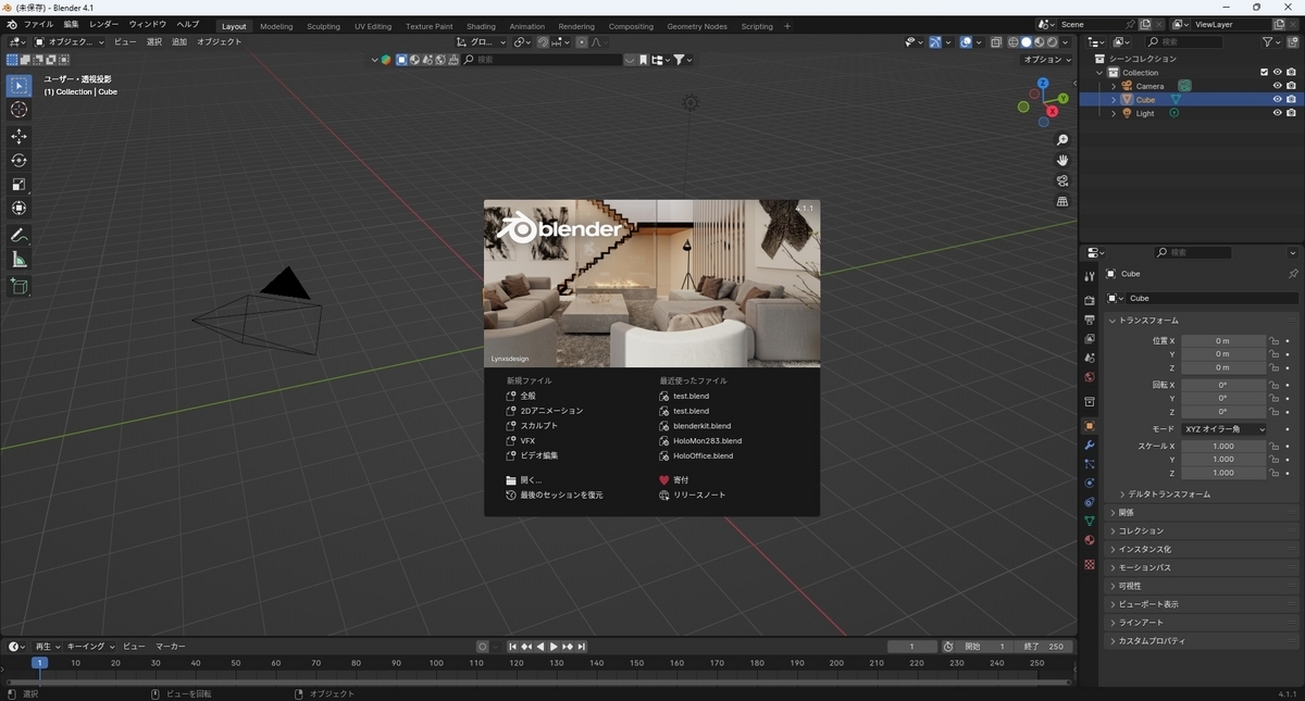 blenderファイルと関連付けたいBlenderを起動します。