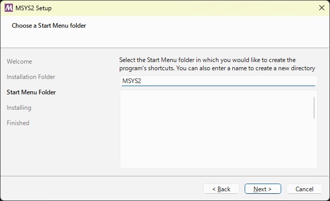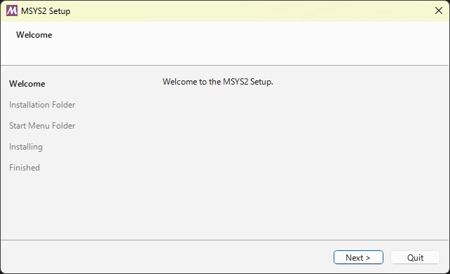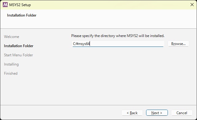 ダウンロードしたmsys2-XXX.exeファイルを実行してインストールを開始します。