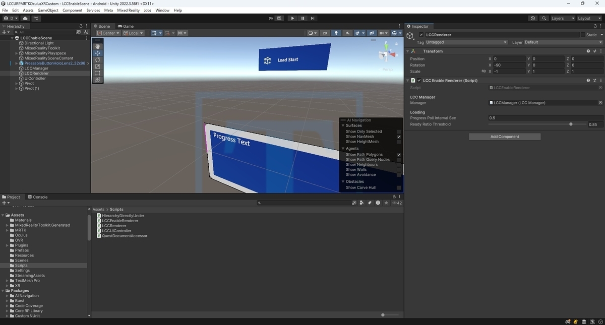 m_renderer = m_manager.GetRender(this.transform); // Load 直後から描画が走るので、事前に止める m_renderer.SetEnable(false); m_renderer.Load(path, PlatformType.Quest, OnLoadCallbackInternal);